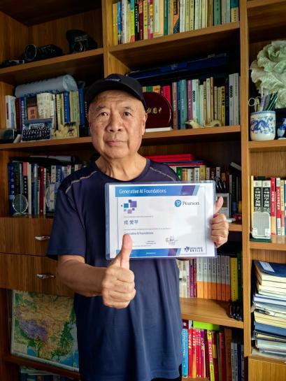 银发 “学霸” 的 AI 进阶路作为新疆塔城地区老科协理事,戎爱平老师已坚持碎片化学习 AI 技能两年多:不仅熟练掌握AI绘画、AI短视频制作、AI PPT设计等技能,产出相关作品上千个,还成功部署了两个关于高考志愿填报的个人智能体,将AI技术与实际需求紧密结合。 选择报考培生 GAI 认证,是因为他看中了这份证书的分量 —— 培生作为全球终身学习公司,在全球范围内提供数字化测评和和认证服务。其推出的GAI 认证覆盖技术原理、实战应用、伦理合规等核心维度,被全球148个国家和地区采用。对戎爱平老师来说,这不仅是对自己过往学习后的技能 “质检”,更是紧跟技术前沿,掌握 AI核心应用能力的契机。 AI当“助教”,备考有妙招